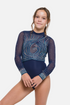 - Navy lycra body with navy sublimated mesh shoulders and sleeves